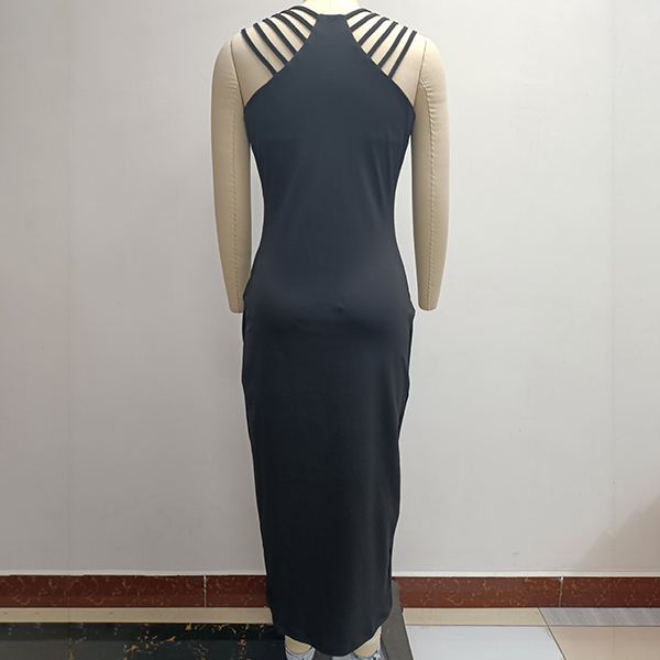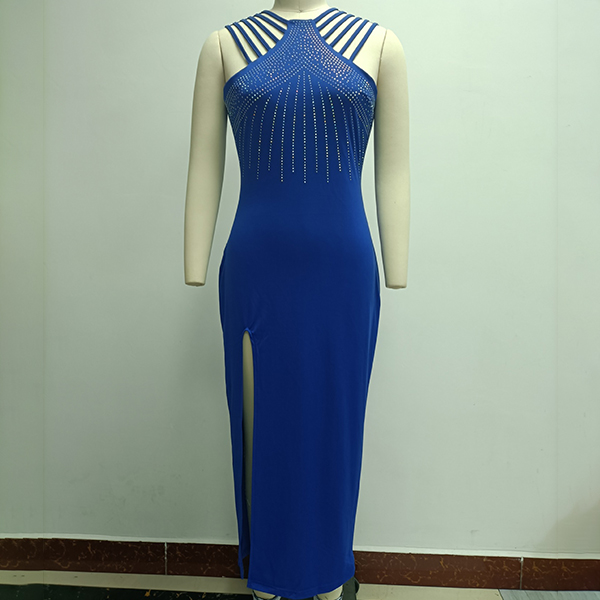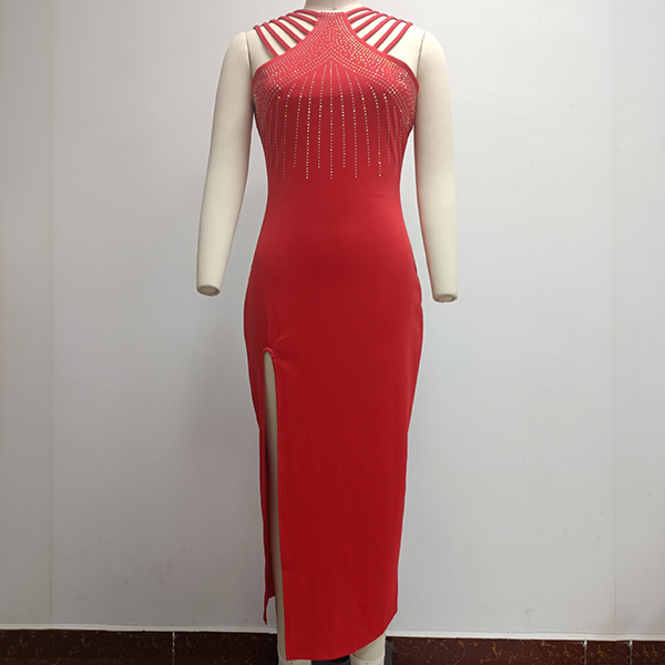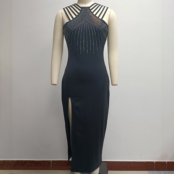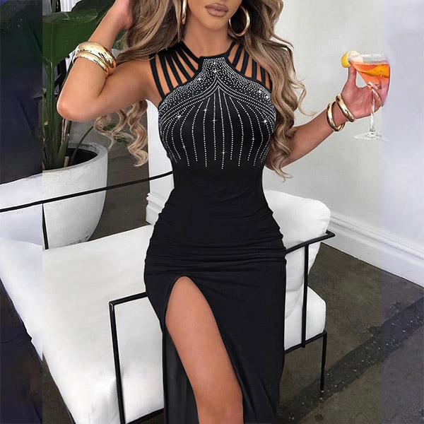 Sexy Rhinestone Front Cutout Sleeveless High Slit Bodycon Party Dress