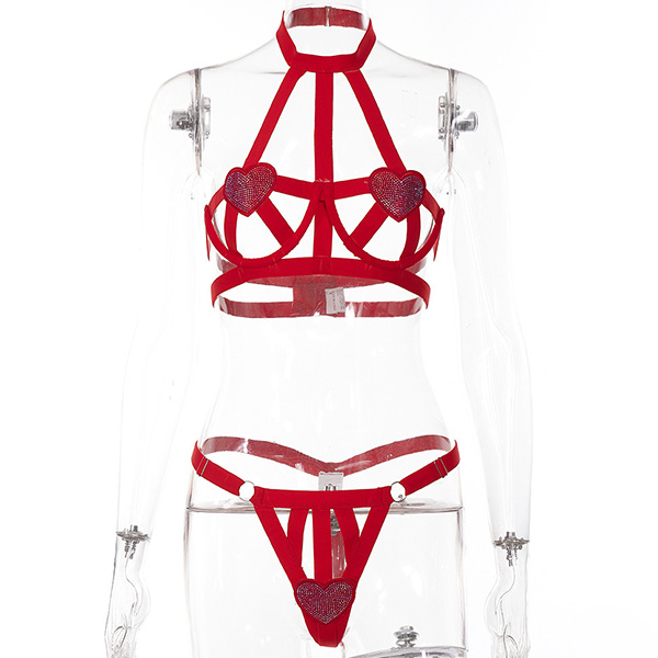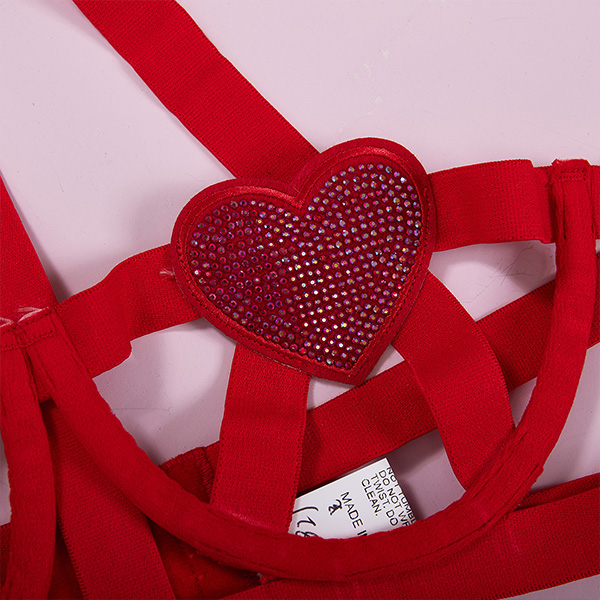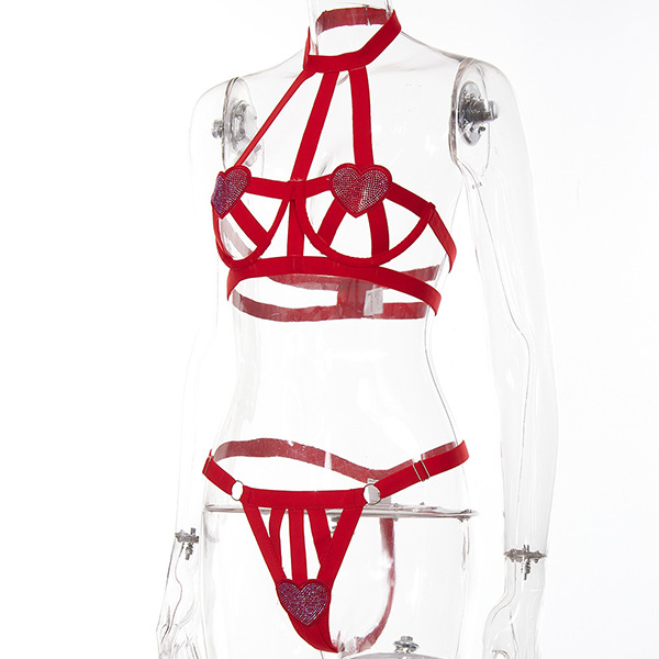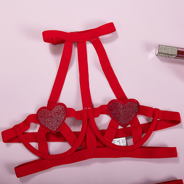 Sexy Rhinestone Heart Cutout Two-piece Lingerie Set