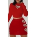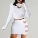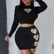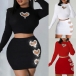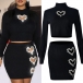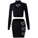 Sexy Rhinestone Heart Cutout Two-piece Set Consist of Crop Top and Mini Skirt