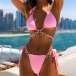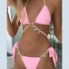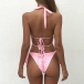 Sexy Rhinestone Inlaid Solid Color Lace-up Halter Bikini Set