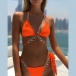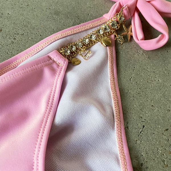 When you are walking on the beach with this bikini set,you can easily be a pleasant sight to draw more attention. Solid color style,including a halter bikini top and a low-waist bikini bottom,this bikini set can showcase your sexy and seductive curve. And the rhinestone inlaid details will make it look more shinning and attractive. Your perfect choice for your beach days and tropical getaways.