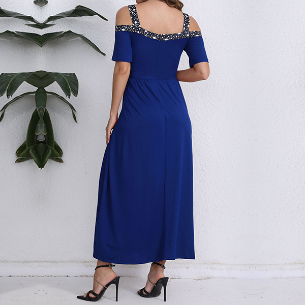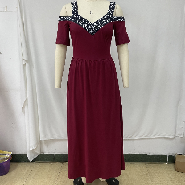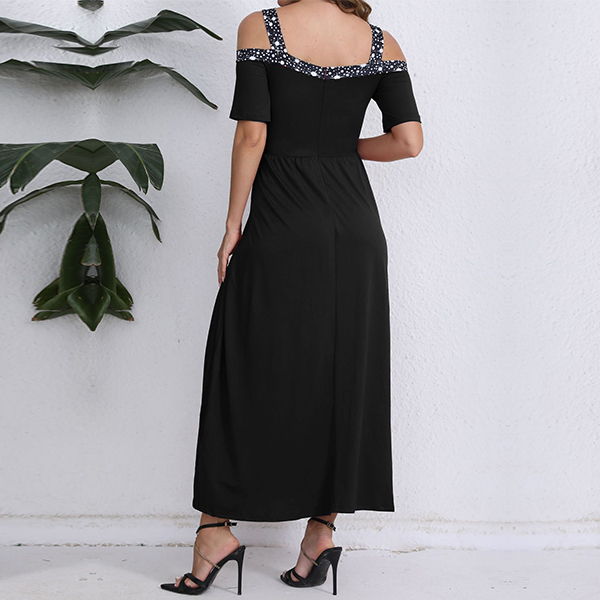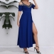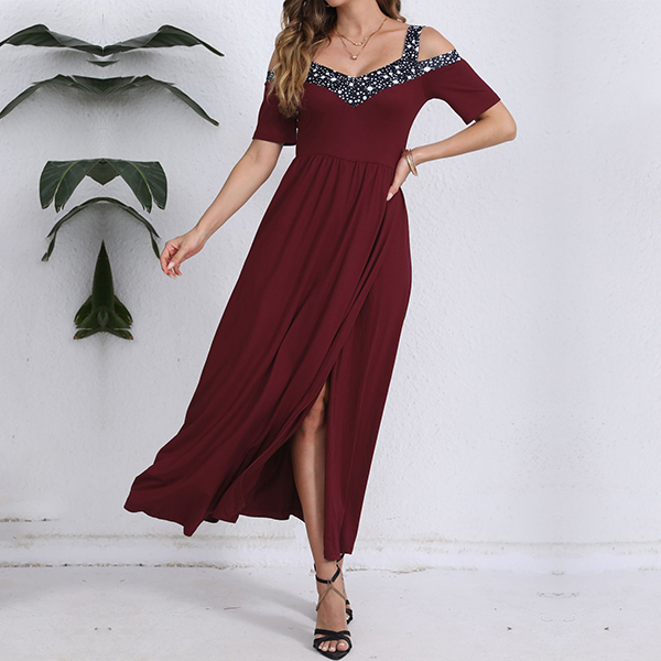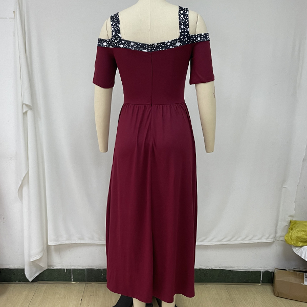 Sexy Printed V-neck Open-shoulder Side Slit Midi Dress