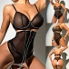 Sexy Rhinestone Tassel Semi-through Three-piece Lingerie Set