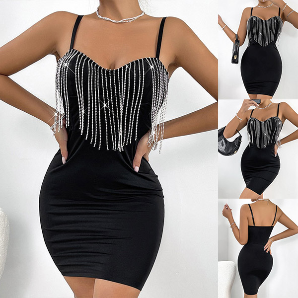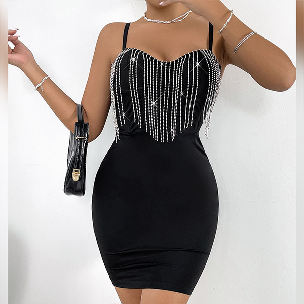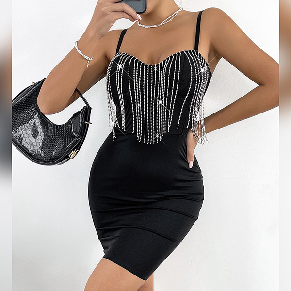 Sexy Rhinestone Tassel Sweetheart Neckline Bodycon Cami Dress