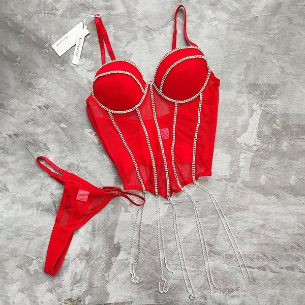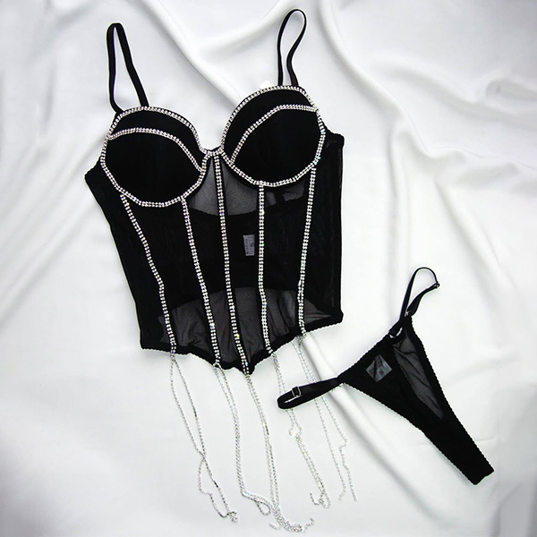 Sexy Rhinestone Tassel Sweetheart Neckline Two-piece Lingerie Set