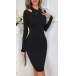 This dress features a round neckline, offering a classic and timeless silhouette. The highlight of this dress is the cutout detailing, strategically placed to show off a hint of skin and add a touch of sexiness to your look. Crafted from high-quality fabric, this bodycon dress offers a figure-hugging and flattering fit, accentuating your curves in all the right places.