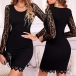 Black dress with lace spliced long sleeve and hemline, you can easily exude your feminine side through this dress.
