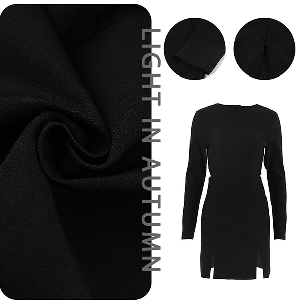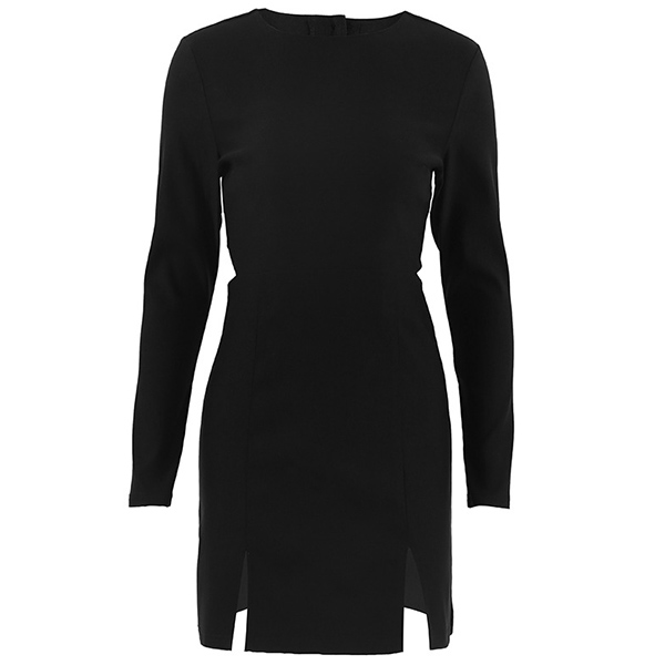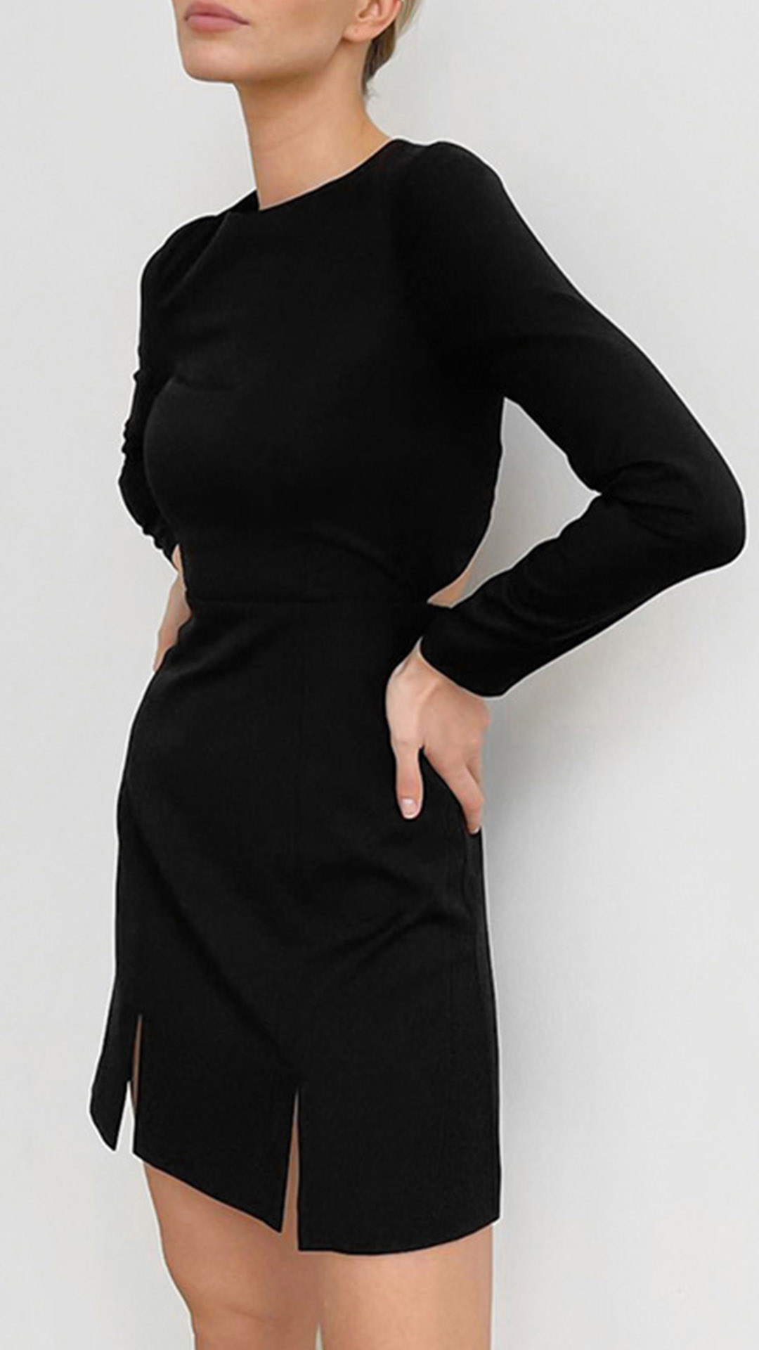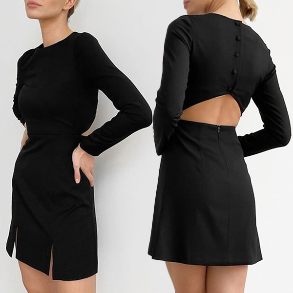 Sexy Round Neck Long Sleeve Backless Buttoned Slit Bodycon Party Dress