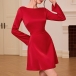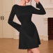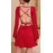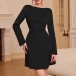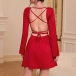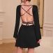 Sexy Round Neck Long Sleeve Criss-cross Backless Dress