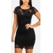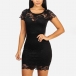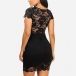 Sexy Round Neck Short Sleeve Black Lace Dress