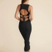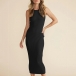 Sexy Round Neck Sleeveless Backless Self-tie Ribbed Dress