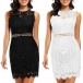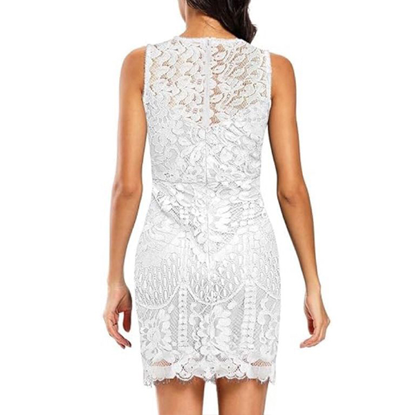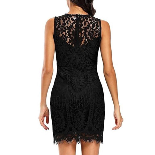 Sexy Round Neck Sleeveless Cutout Lace Dress