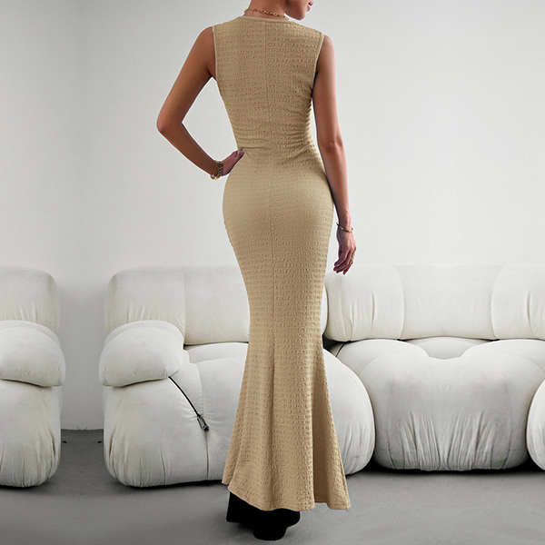 Sexy Round Neck Sleeveless Fishtail Maxi Dress