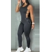 Sexy Round Neck Sleeveless Side Cutout Rhinestone Slim Fit Jumpsuit