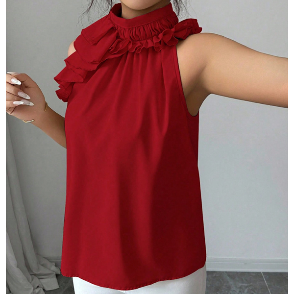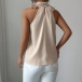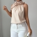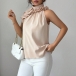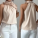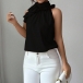 Sexy Ruched Mock Neck Sleeveless Shirt