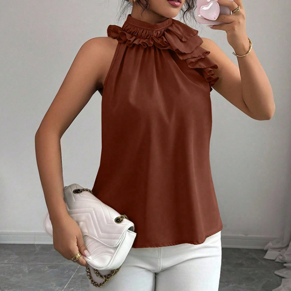 Look at this shirt~The refined mock neckline brings modern elegance and structured sophistication, creating a polished frame for your face and neck. Sleeveless styling keeps things clean and versatile, perfect for layering or wearing solo across seasons. Multi-colors avabile.