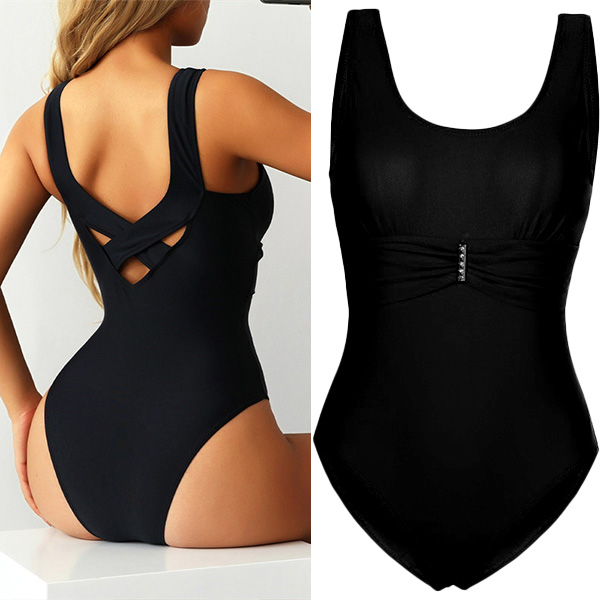 Sexy Ruched Rhinesotone Backless Cross-criss One-piece Swimsuit