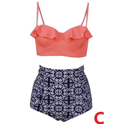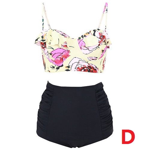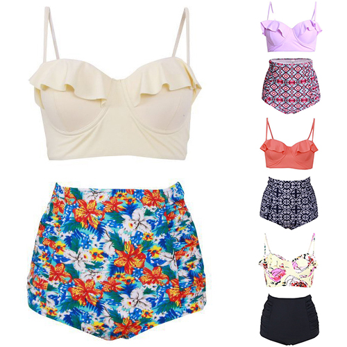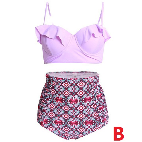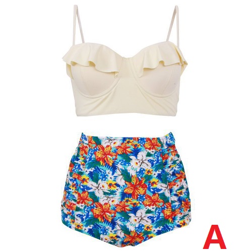Wanna be the focus on the beach? Then opt for this bikini set! Including a ruffle bikini top and a high waist briefs,