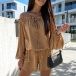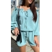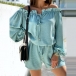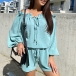 Sexy Ruffle Boat Neck Long Sleeve Drawstring Waist Romper