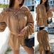 Bear the very air of romance wherever you go, thanks to the feminine taste of this romper. The boat neck with ruffle design can lend you a dash of sweet yet flirty vibes,and the drawstring design at the waist part can give you a better gathered effect. When you wanna boost your charm and update your style,you can just have a try this romper.