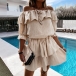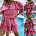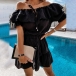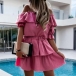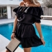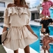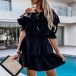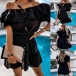 Sexy Ruffle Boat Neck Short Sleeve Solid Color Dress