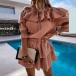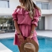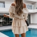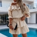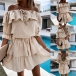 It is a good chance to exude your sweet yet feminine side through this beautiful dress. Solid color style,the ruffle boat neck design can showcase your charming shoulder and seductive collarbone. When having a dating with your friends,you can just slip into this dress to express your beauty and charm.