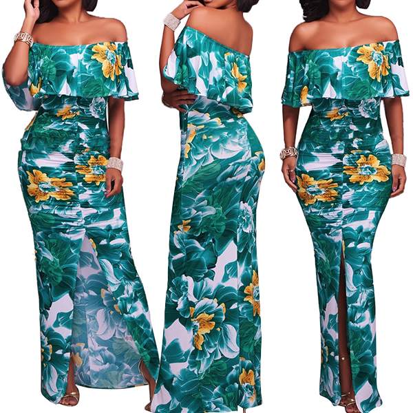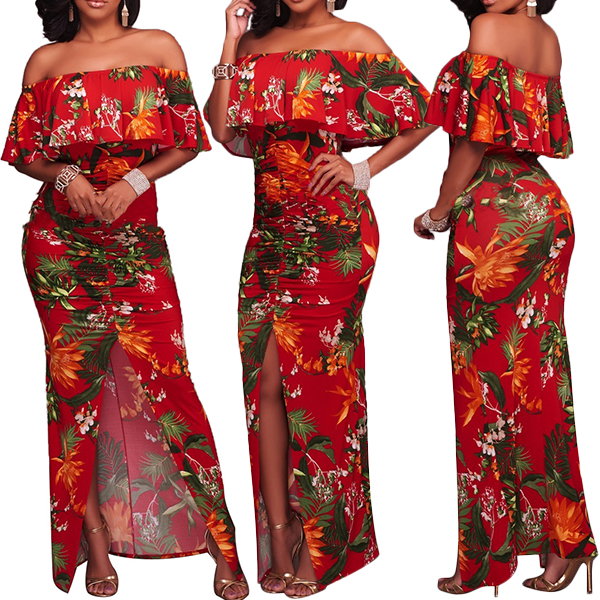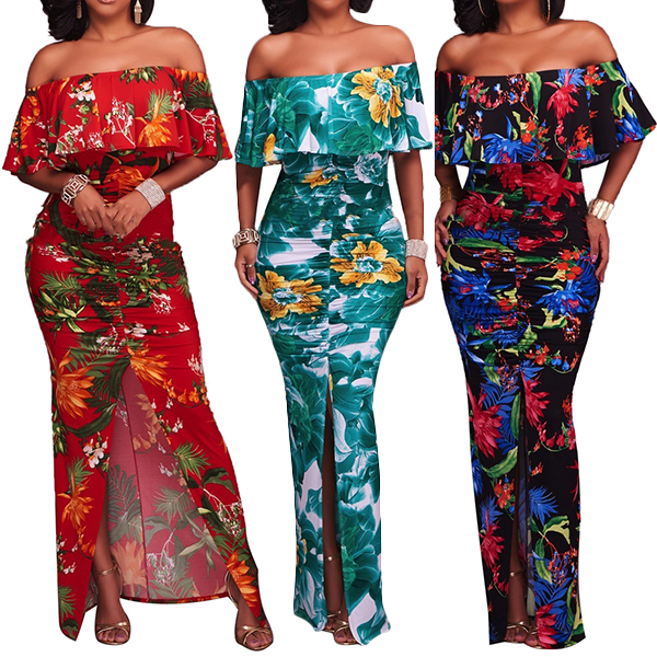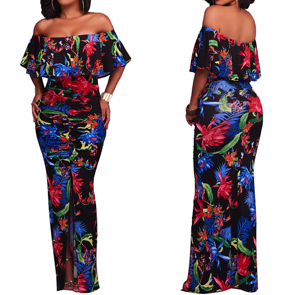 achieve that. Its eye-catching and vibrant floral print design can help you win more eyes,while its ruffle boat neck and