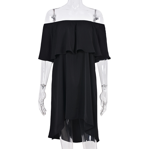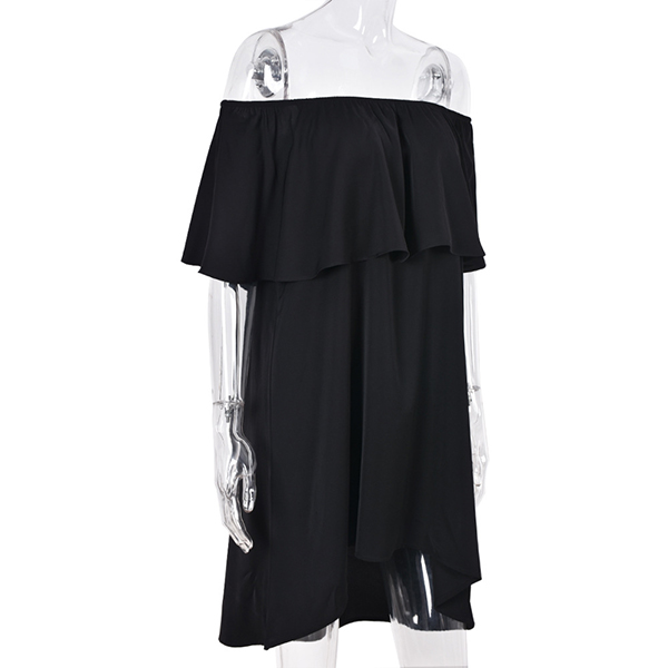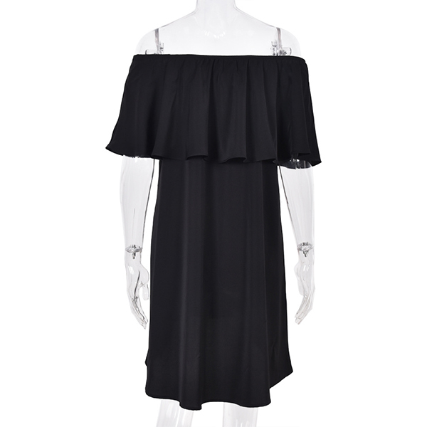 Sexy Ruffle Boat Neck Solid Color Loose Dress