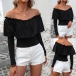 Sexy Ruffle Off-the-shoulder Long Sleeve Shirt