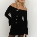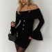 Sexy Ruffle Off-the-shoulder Trumpet Long Sleeve Front Button Shirt
