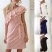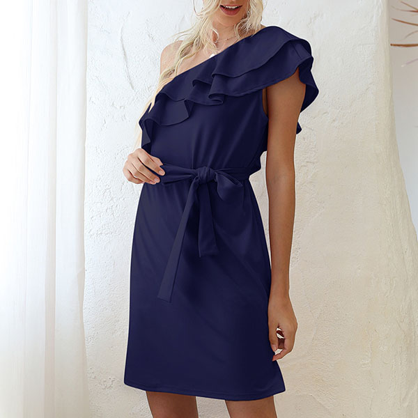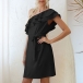 Sexy Ruffle One-shoulder Solid Color Dress