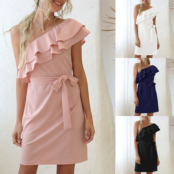 This effortless sexy and flirty dress is perfect for any last-minute invitation. One-shoulder style and ruffle design make this piece full of sexy,flirty and feminine vibes. Comes with a waist strap design,which can better highlight your figure. You just need to match with your sexy heels and elegant clutch,then you can look stunning enough!