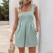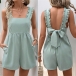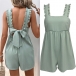 Sexy Ruffle Shoulder Strap Square Neck Back Bowknot Side Pocket Romper