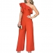 This jumpsuit is the perfect blend of chic and stylish, ideal for making a fashion statement at any event. The ruffle slant shoulder design adds a touch of elegance and sophistication, while the wide-leg pants add a trendy and fashion-forward touch, making this jumpsuit a standout piece in your wardrobe. Whether you're attending a party, a special occasion, or a night out, this jumpsuit is sure to make you stand out~