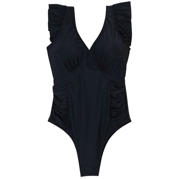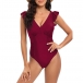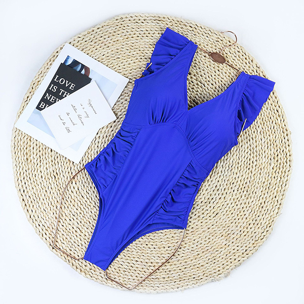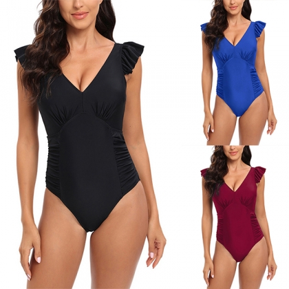 Sexy Ruffle Sleeveless V-neck Side Ruched One-piece Swimming Suit/Monokini