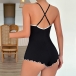 Sexy Ruffle V-neck Criss-cross Backless Lingerie Bodysuit