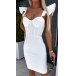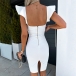 This dress features a flattering sweetheart neckline that accentuates your curves, while the sleeveless design with ruffled shoulder details adds a touch of sexiness. The bodycon fit hugs your figure in all the right places, creating a stunning silhouette. White and black, which one do you like?