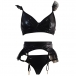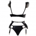 Sexy Ruffled Spliced Artificial Leather PU Three-piece Lingerie Set