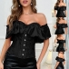 Sexy Ruffled Strapless Jacquard Buckle Lace-up Corset Shirt