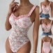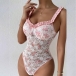 Sexy Ruffled V-neck Floral Lace Bodysuit