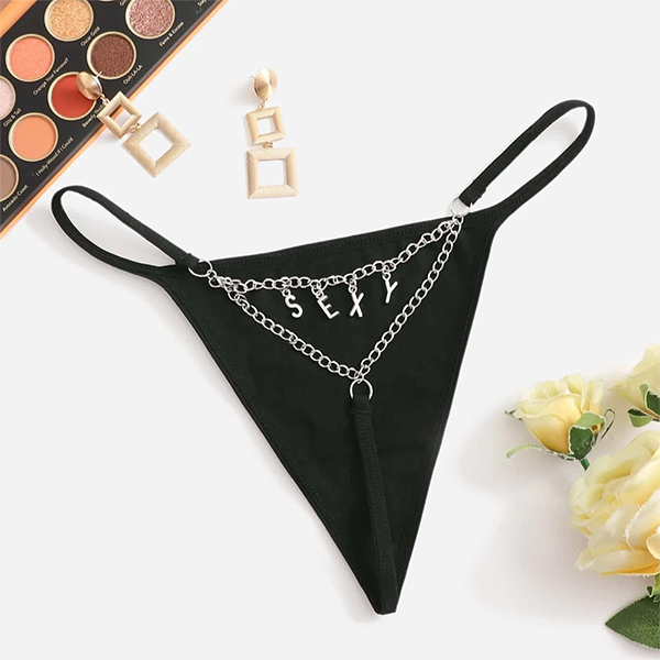 Sexy S-E-X-Y Letter Pendant Chain Splice Low-rise Thong/Panties