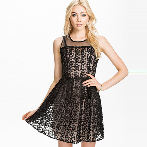 Inside with a sling dress. Sleeveless,round neck and high waist design,can perfect show your