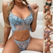 Sexy See-through Gauze Embroidery Spliced Push-up Underwear Bra Set