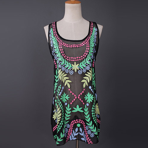 See-through style,with bright floral print pattern,looks so sexy and chic. Loose style,