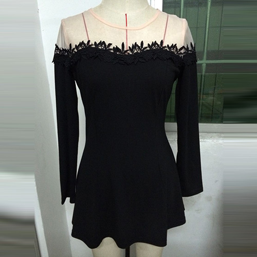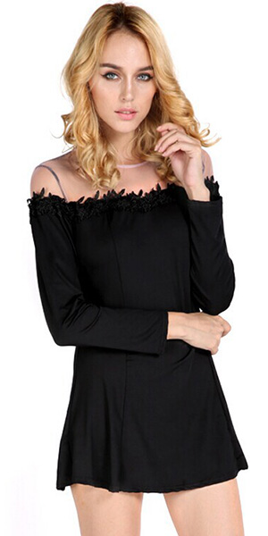 Look so charming and stylish in this dress. Its see-through gauze and lace spliced design is the