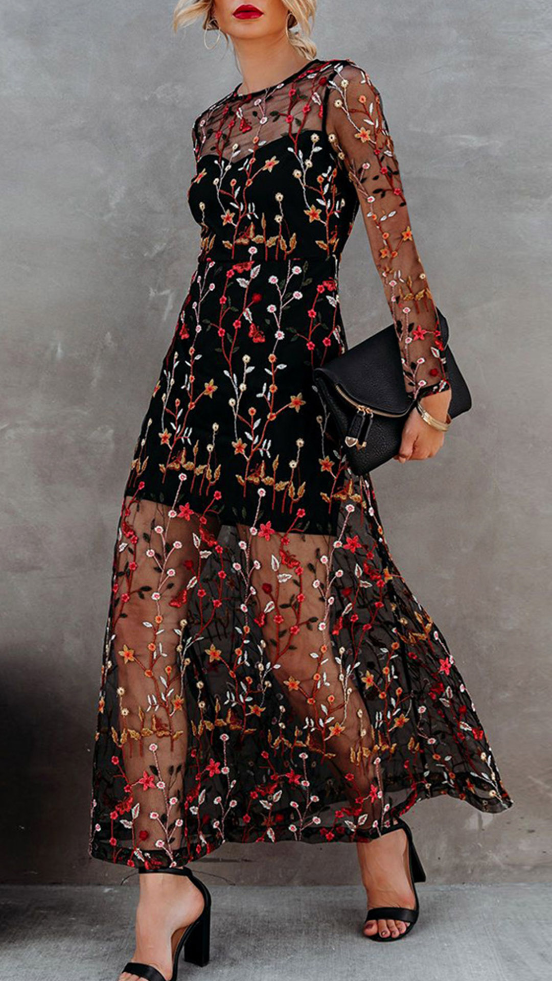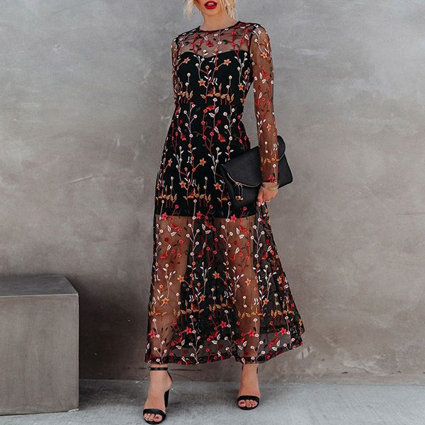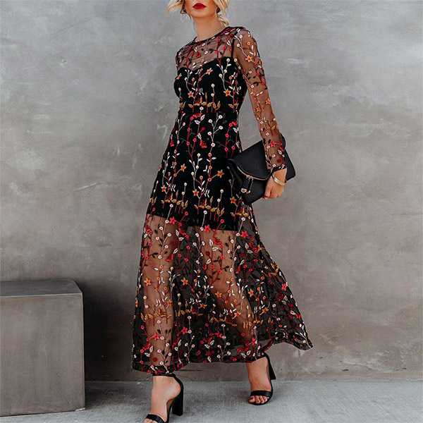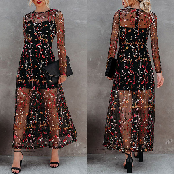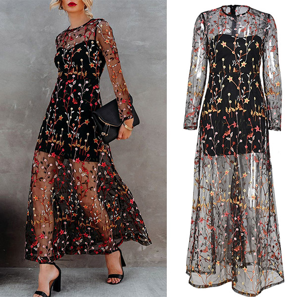 Wanna shine at your next event? Then you can just have a try this two-piece set. It consists of a long sleeve see-through gauze dress and a sling dress,designed with embroidery details,this two-piece set can offer you an alluring and stunning look! So why not save this two-piece set for your cocktail parties,wedding parties,weekend gatherings and so on.