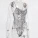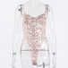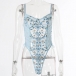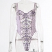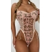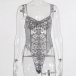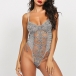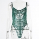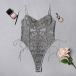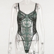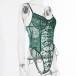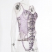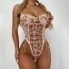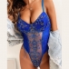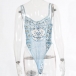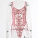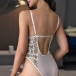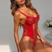 Sexy See-through Gauze Spliced Embroidery Lace-up One-piece Lingerie