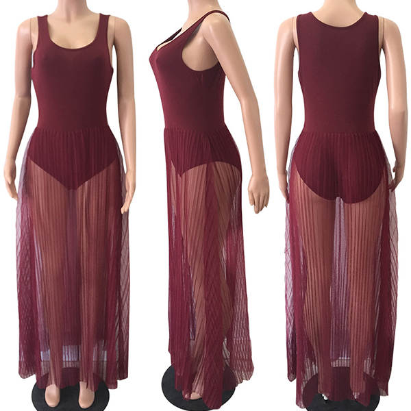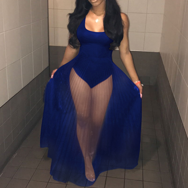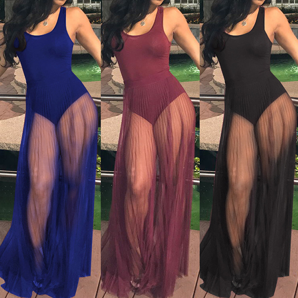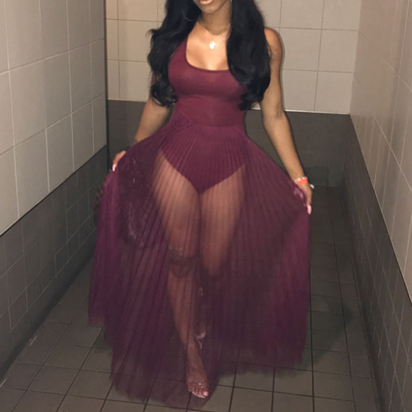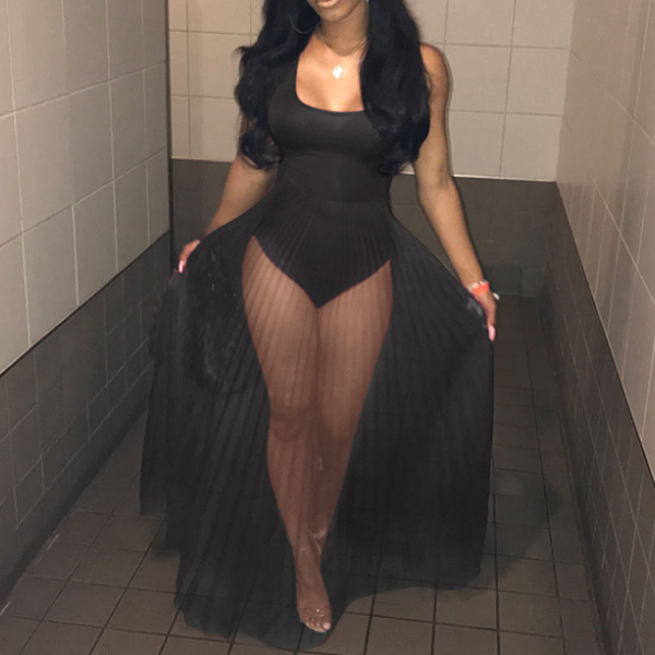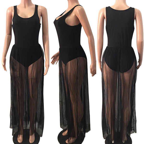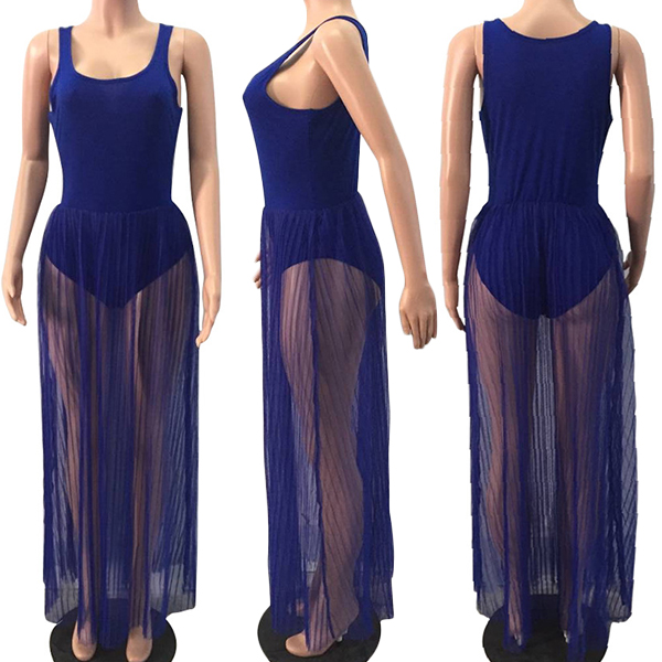 Wanna look stunning on tonight's party? Then you can opt for this dress. It is styled with sleeveless,U-neck and see-through