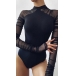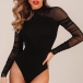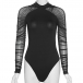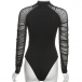 Sexy See-through Gauze Spliced Long Sleeve Mock Neck Slim Fit Bodysuit