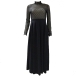 Wanna achieve for a more alluring party look? Then you can make your eyes focused on this dress. The see-through gauze spliced details and slit hem design make this piece look so sexy and flirty. Finished with long sleeve,mock neck and high waist design,this dress also can showcase your slender figure while it express your beauty and charm.